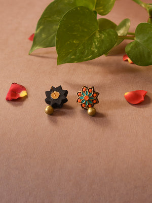 Home Orange Aqua Blue Antique Gold Floral Mandala Work Handmade Terracotta Stud Earrings