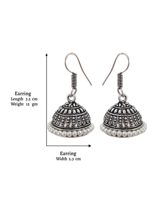 Home German Silver Jhumkas With White Droppings