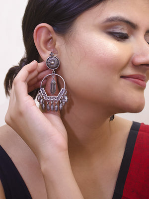Silver Plated Floral Design Dangler Earring