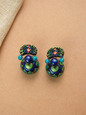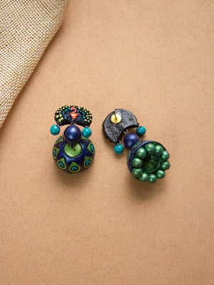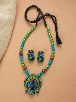 Peacock Design Green and Blue Handmade Terracotta Necklace Set