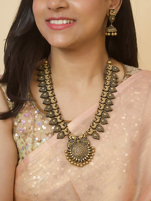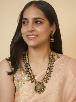 Peacock Mango Design Antique Gold Temple Haram Style Handmade Terracotta Necklace Set