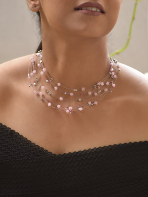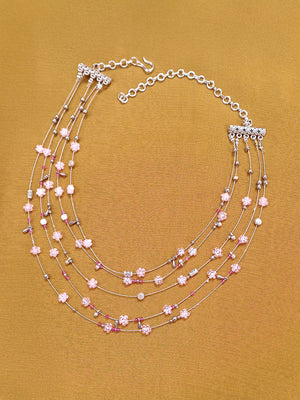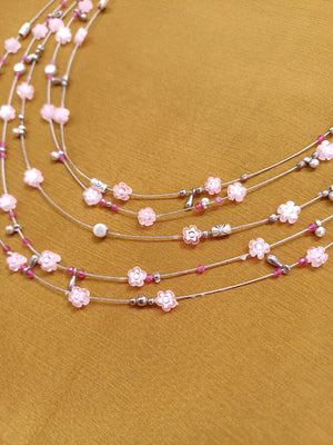 Primavera - Pink Floral Beaded Multi-Layer Necklaces with German Silver Accents