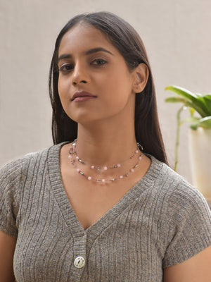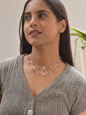 Primrose – Pink Floral Beaded Two-Layer Necklace with German Silver Accents