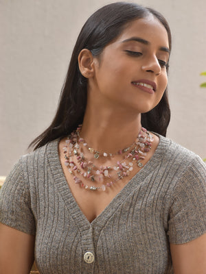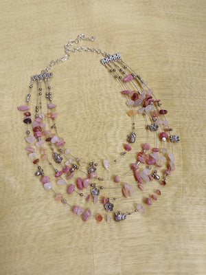 Rosalune – Multi-Layer Pink Rose Quartz Agate Necklace with German Silver Motifs