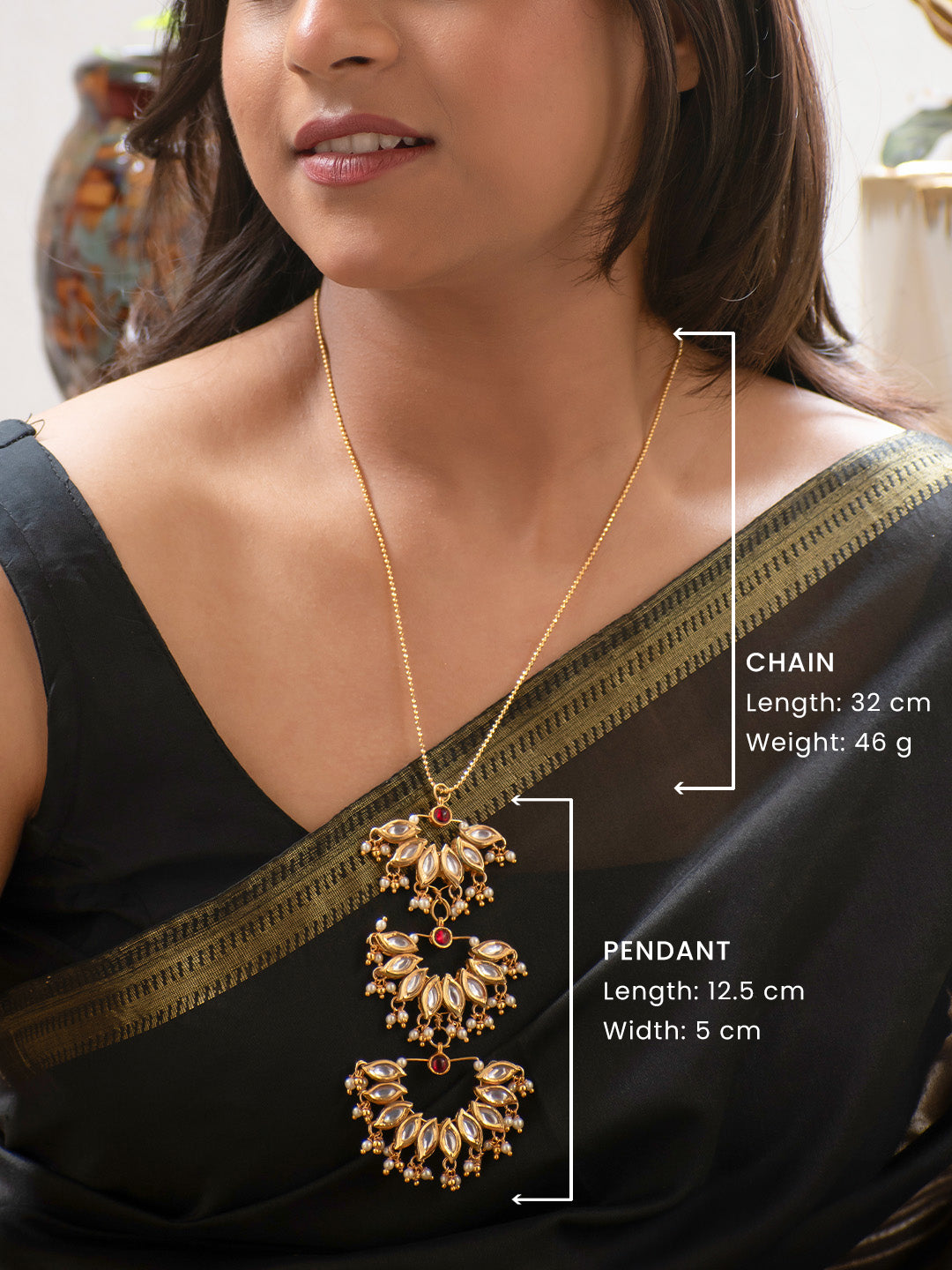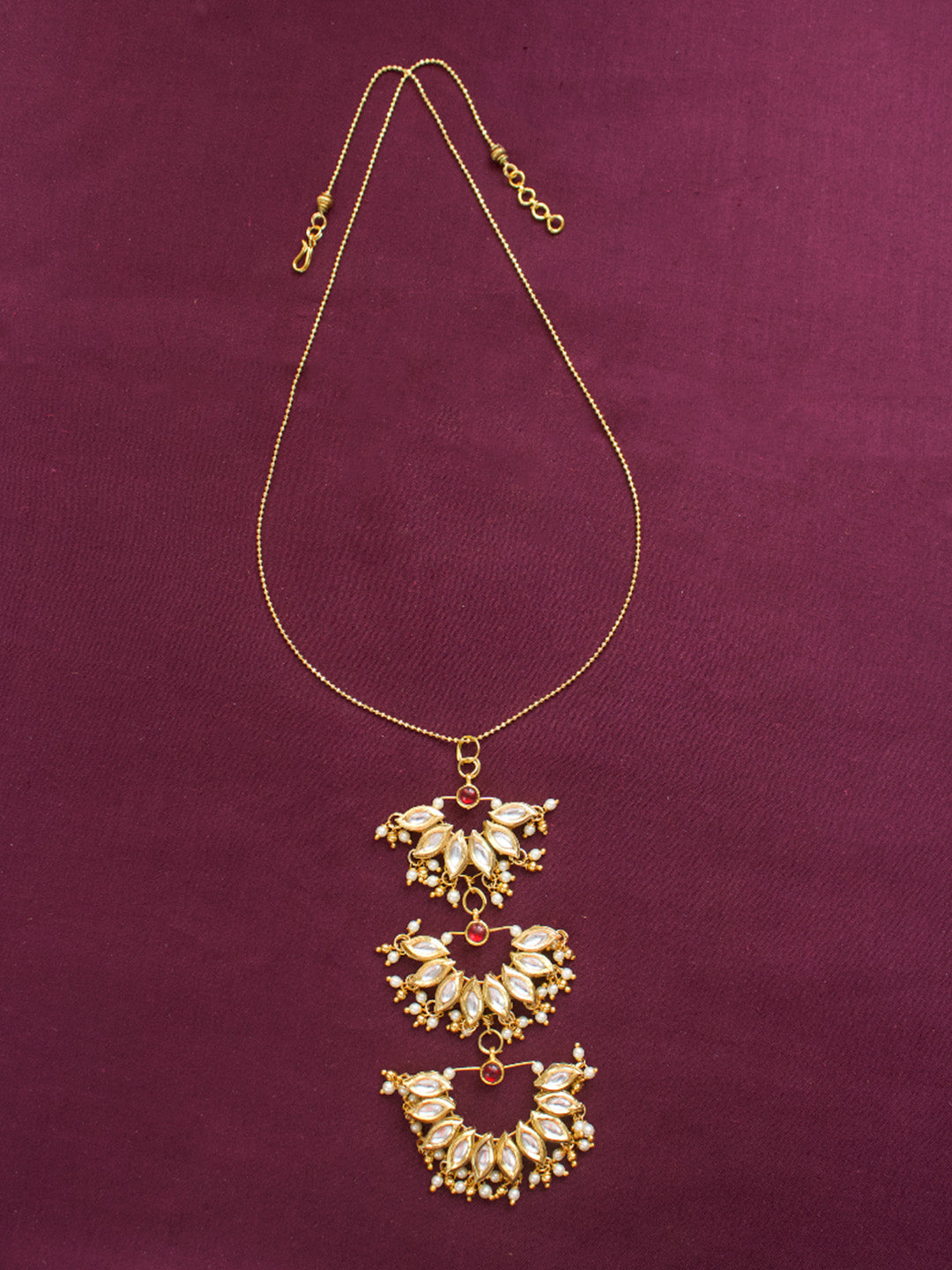Premium Gold Finish Kundan and Kemp Stone Pearls Necklace Gold Chain