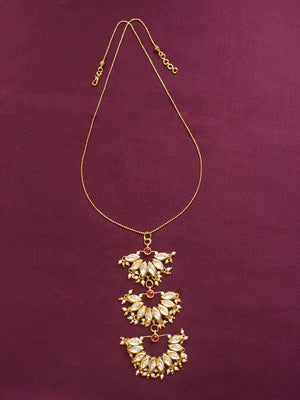 Home Premium Gold Finish Kundan and Kemp Stone Pearls Necklace Gold Chain