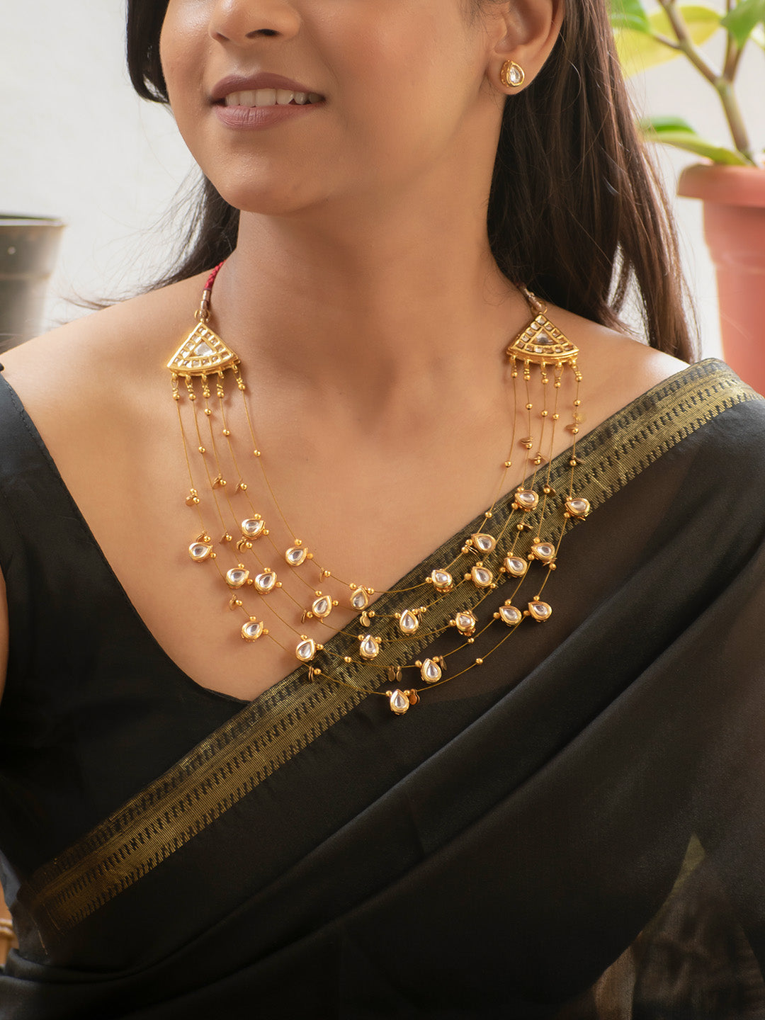 Premium Gold Finish Kundan 5 Layered Necklace Set