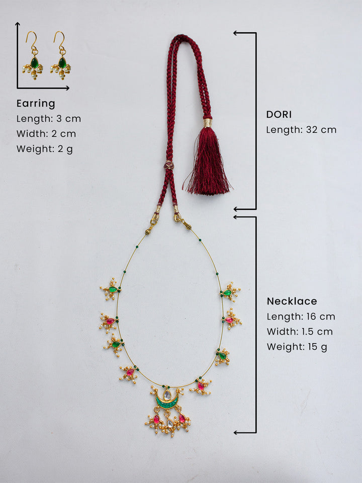 Premium Gold Finish Red Green Pearls Necklace Set