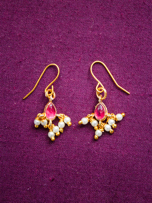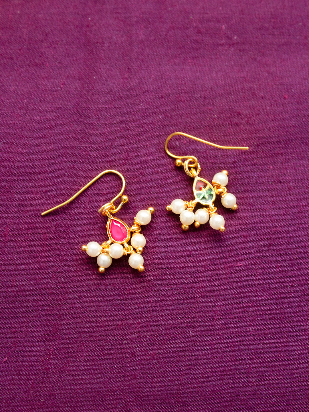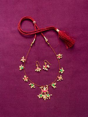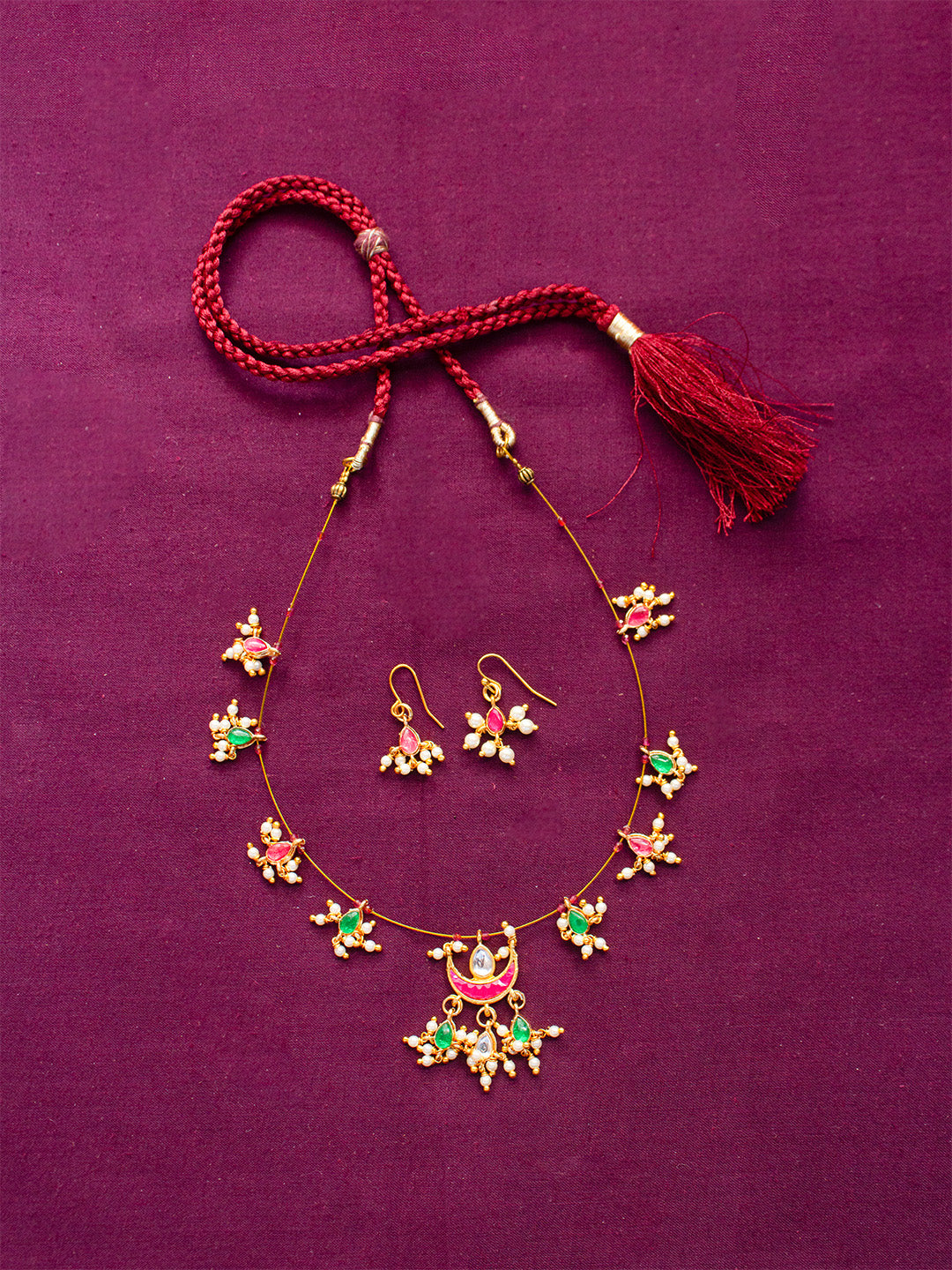 Home Premium Gold Finish Red Green Pearls Necklace Set