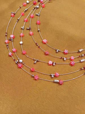 Rosabella – Multi-Layer Red Floral Beaded Necklace with German Silver Accents