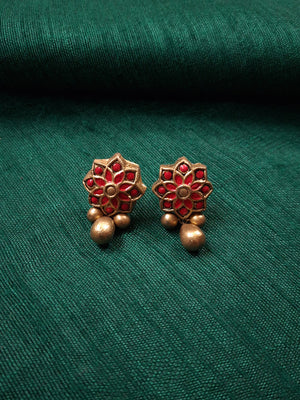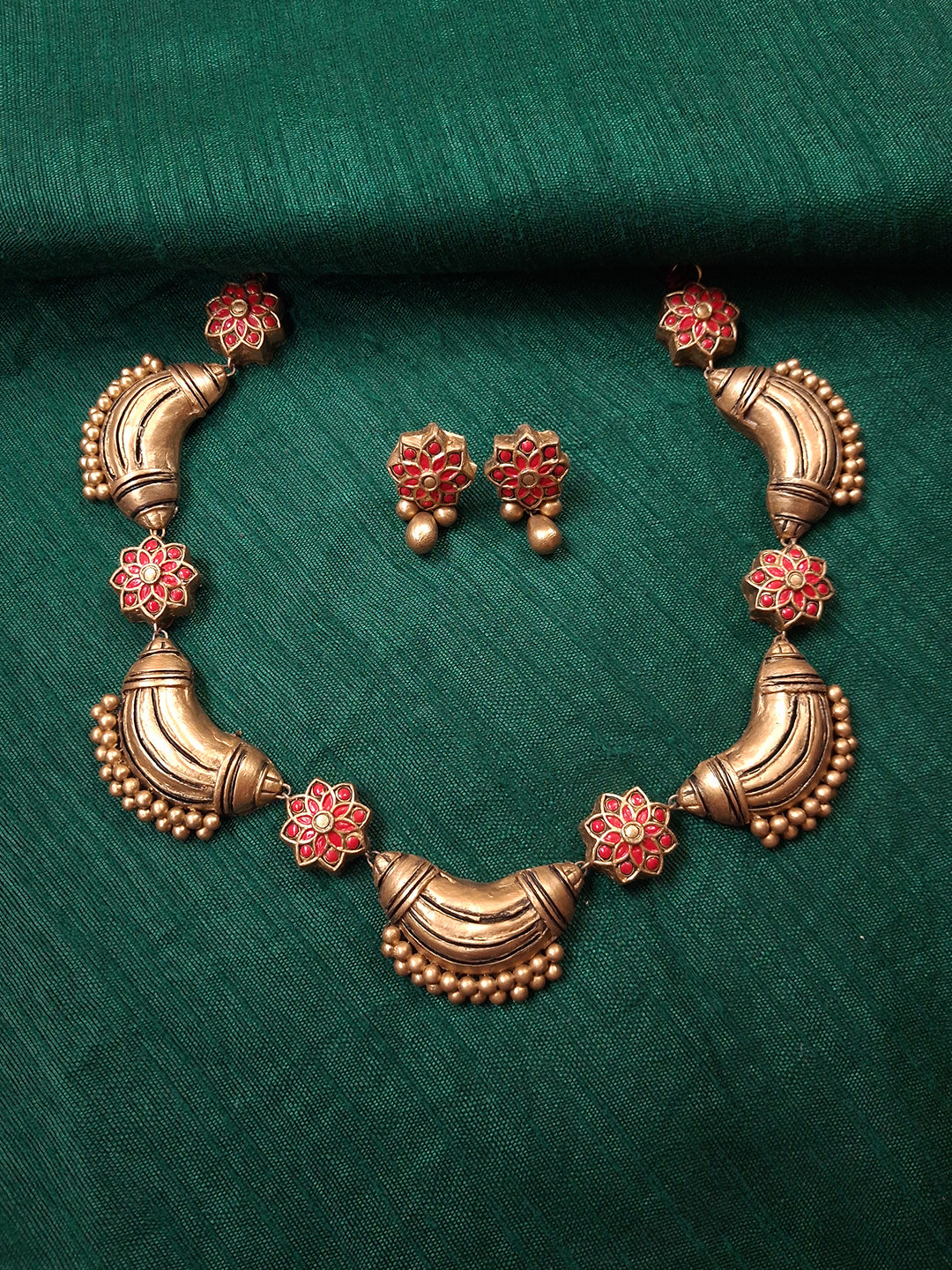 Chandra Pushpa — Terracotta Crescent Bloom Necklace Set With Studs