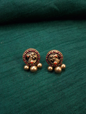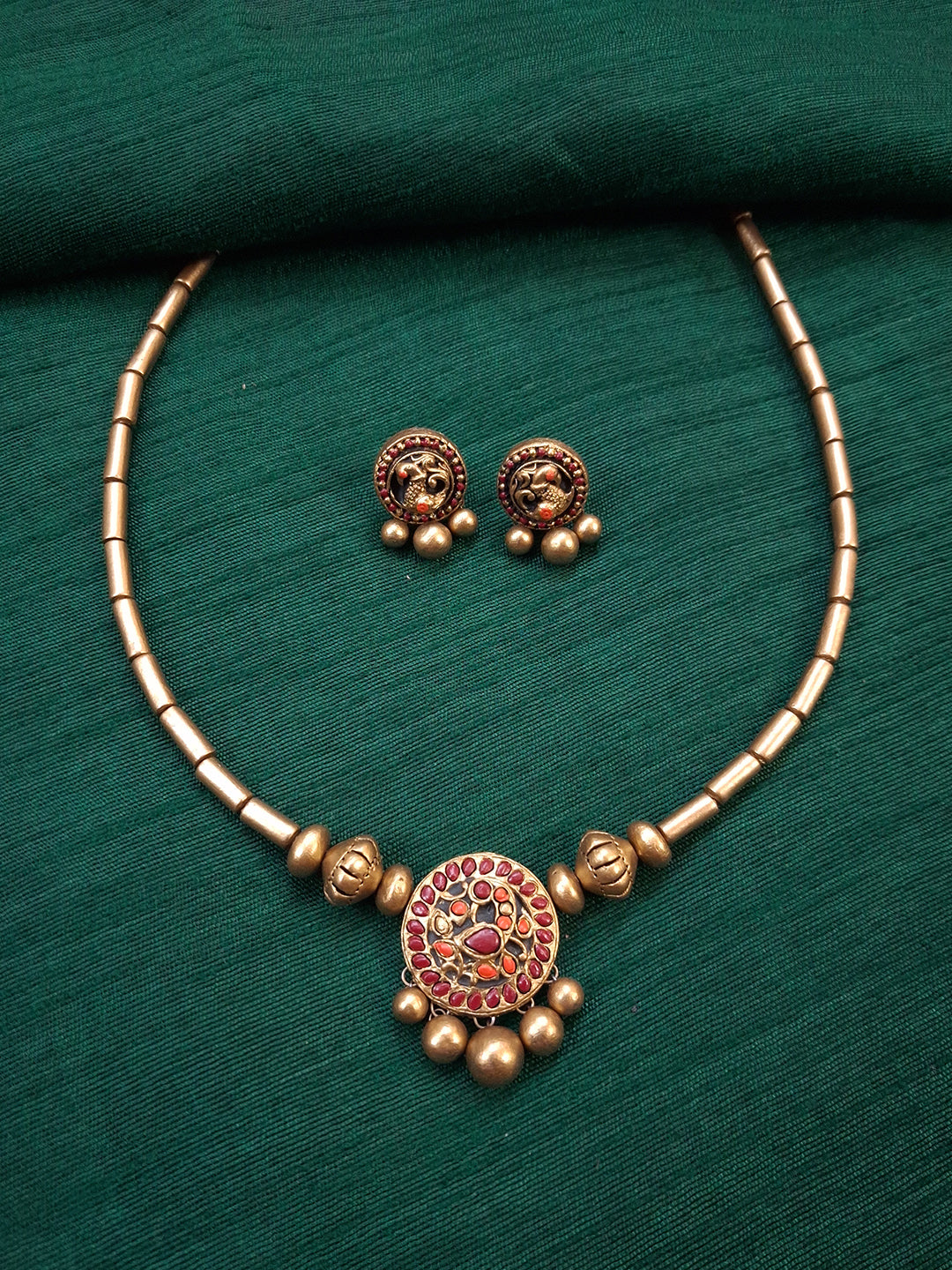 Shrinika – Handmade Terracotta Mandala Pendant Necklace Set with Antique Gold Accents