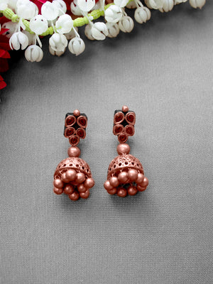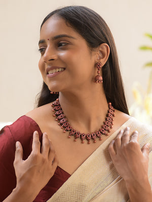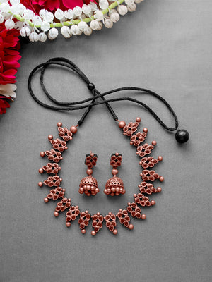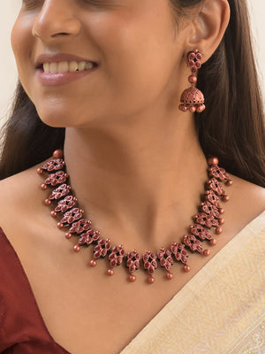 Copper Finish Leaf Design Handmade Terracotta Necklace Set