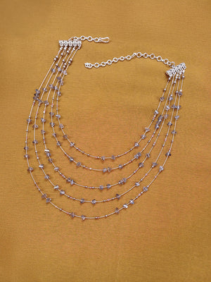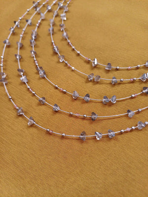 LunaGlow – Multi-Layer Smoky Grey Agate Gemstone Necklace with German Silver Accents, Layered Boho Statement Jewelry