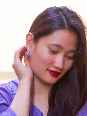 Spiral Design  Blue Stud  With Stones Earring