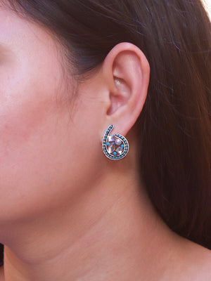 Spiral Design Blue Stud With Stones Earring