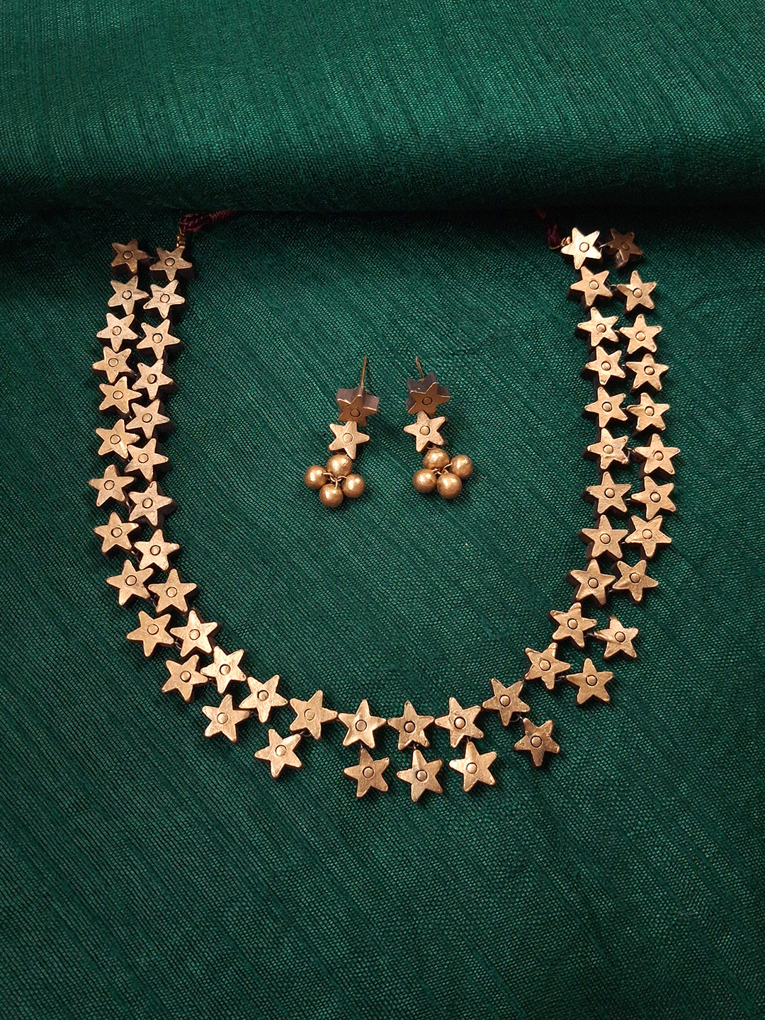 Nakshatra Pataka Mala — Starlit Terracotta Cascade Necklace Set With Studs