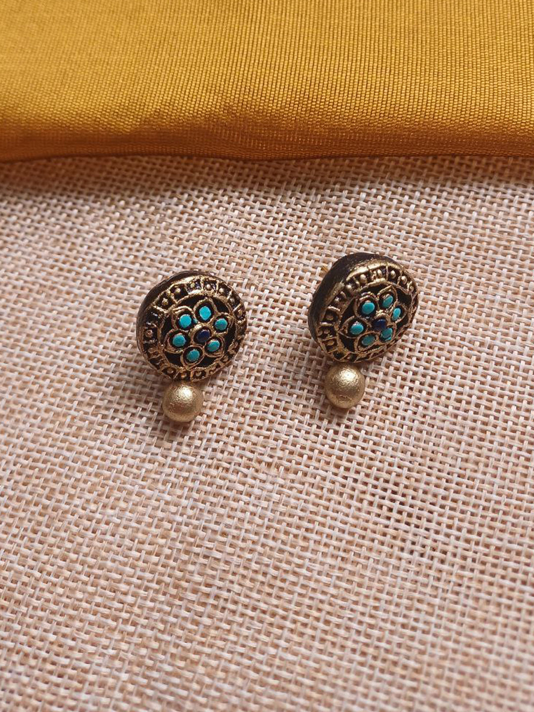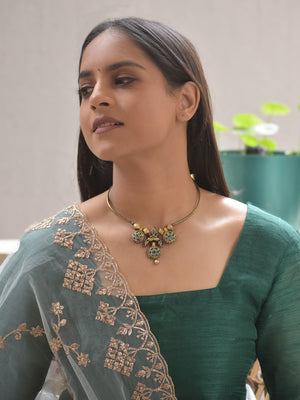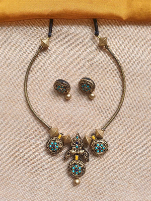 Terracotta Antique Gold Collar Necklace Set with Turquoise Stone Design Motifs