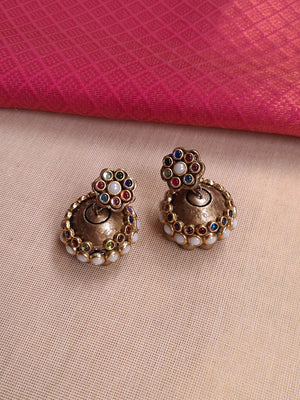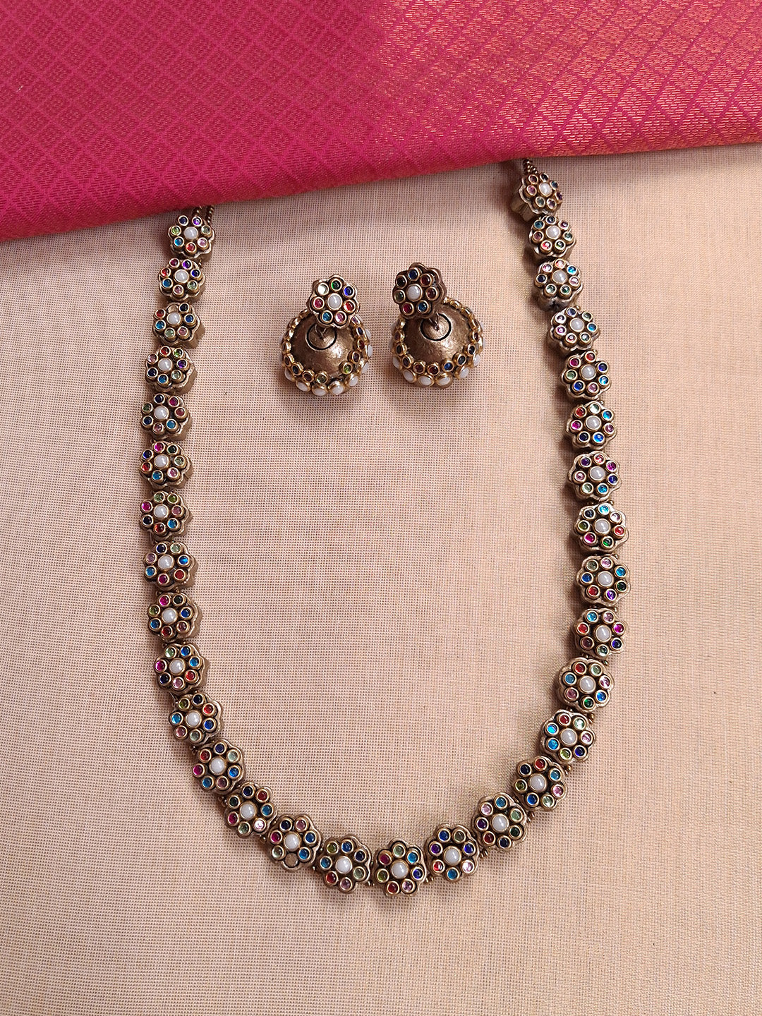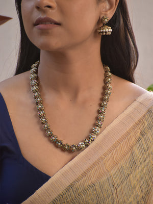 Terracotta Antique Gold Floral Multi Color Beaded Necklace Set with Earrings
