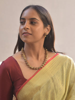 Terracotta Blossom Bead Necklace Set With Floral Studs