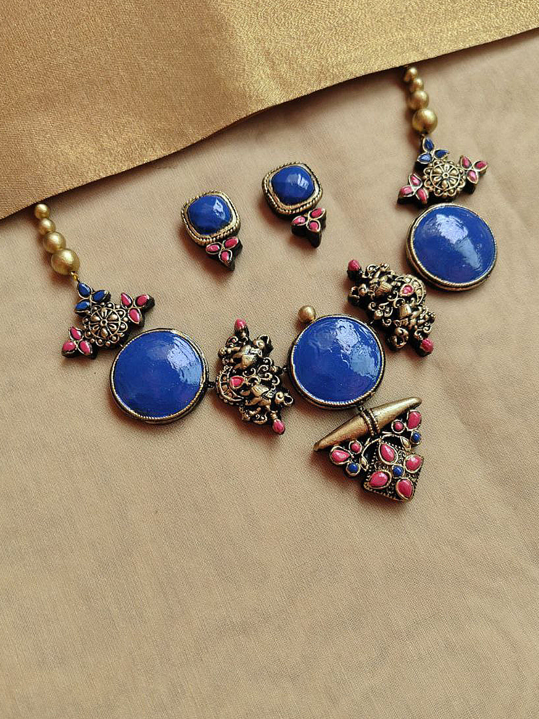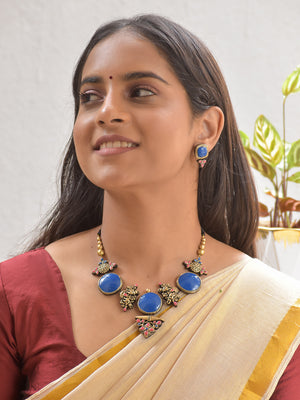Home Terracotta Blue Royal Circle Necklace Set with Peacock Motifs
