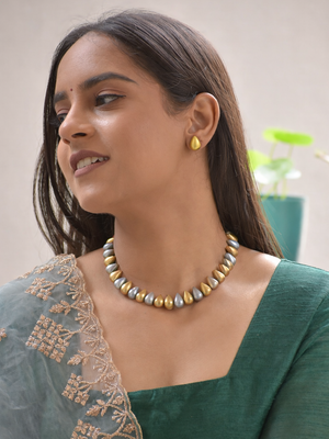 Terracotta Dual-Tone Gold & Silver Teardrop Bead Necklace Set