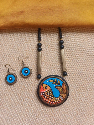 Terracotta Handpainted Fish Motif Pendant Necklace Set