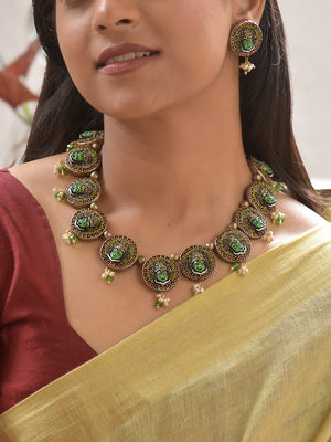 Home Terracotta Kathakali Face Necklace with Green Accents & Earrings