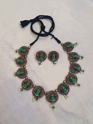 Terracotta Kathakali Face Necklace with Green Accents & Earrings
