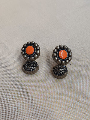 Terracotta Orange Floral Bead Necklace with Antique Black Accents & Earrings