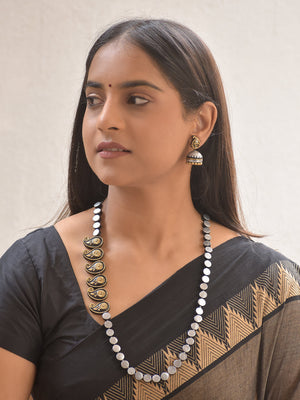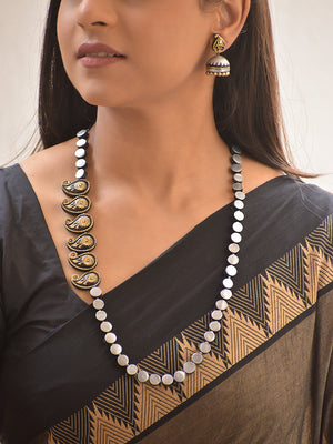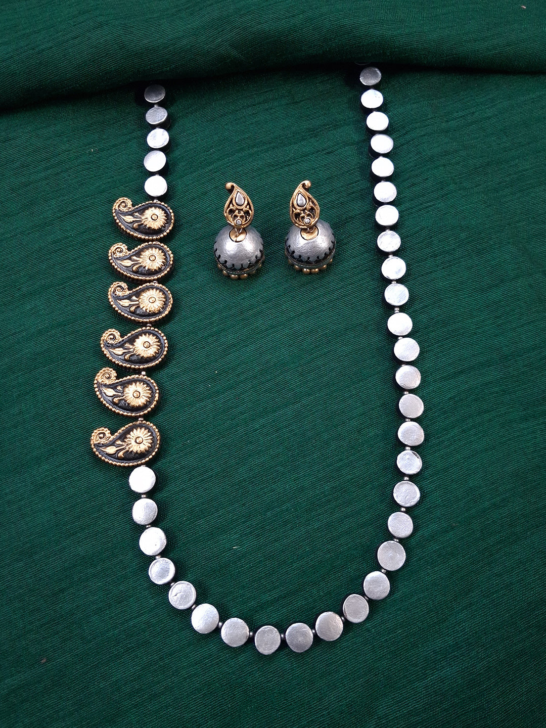 Rajata Paisley Chakra — Terracotta Paisley Silver Disc Necklace Set With Jhumkas