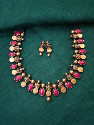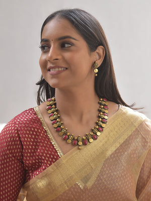 Rakta Mani Sanyoga — Terracotta Ruby–Coin Fusion Necklace Set With Earrings