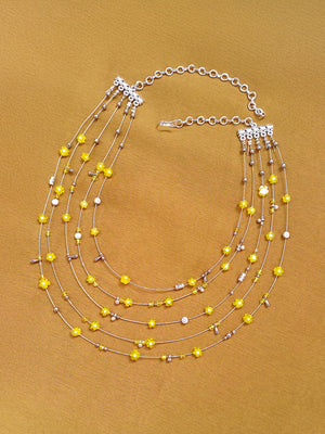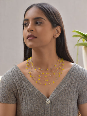 SunPetal – Multi-Layer Yellow Floral Beaded Necklace with German Silver Accents