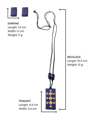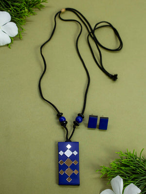 Blue Geometric Rectangular Shape Mirror Design Work Minimalistic Handmade Terracotta Necklace Set